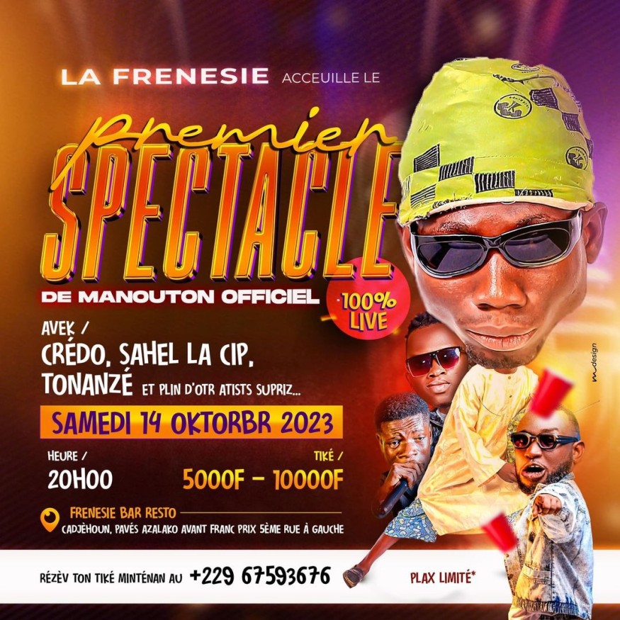 La première question qu'on se pose c'est va-t-il parler ? Jamais la parole d'un humoriste n'avait suscité autant de curiosité après khaby Lame. Par son look et son approche atypique à l'humour, Manouton s'est rapidement fait remarquer. Cette Première sort l'artiste des réseaux sociaux qui ont été jusqu'ici son terrain de prédilection. L'occasion de passer un moment de fou rire, en live ? Prenez vos places dès maintenant ici. Seront aussi sur scène Credo, Sahel La Cip,Tonanzé...
